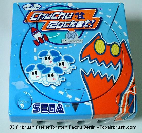Sebagai apresiasi terhadap penggemar dalam sebuah kompetisi, SEGA of Germany menggandeng seorang artist Airbrush ternama di Jerman, T. Ranchu untuk menggoreskan Airbrush-nya di sembilan Dreamcast yang mereka jadikan hadiah. Salah satunya yang paling dikenang adalah dengan corak Chu Chu Rocket diatas