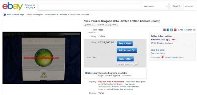 Karena sangat langka, bahkan ada user di Ebay yang menjual konsol ini kembali dengan harga US $1300 (sekitar Rp 13 Juta)